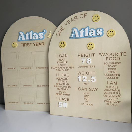 Our Birthday Boards are the perfect pieces to showcase all your little one's milestones over the first year of their life. These boards look beautiful as a display at their very first birthday as well as in their room as a special keepsake after the celebrations.