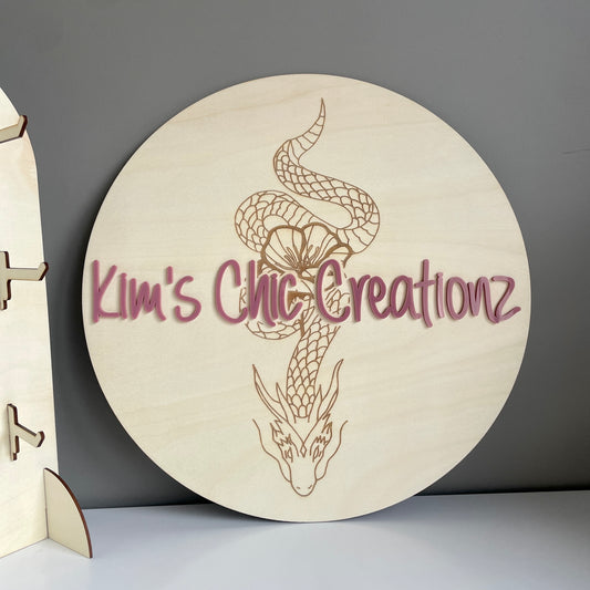 Business Logo Sign | Engraved | Round | Wooden with 3D Acrylic Lettering