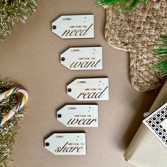 Need, Read, Wear, Share & Want Gift Tags (Set of 5)