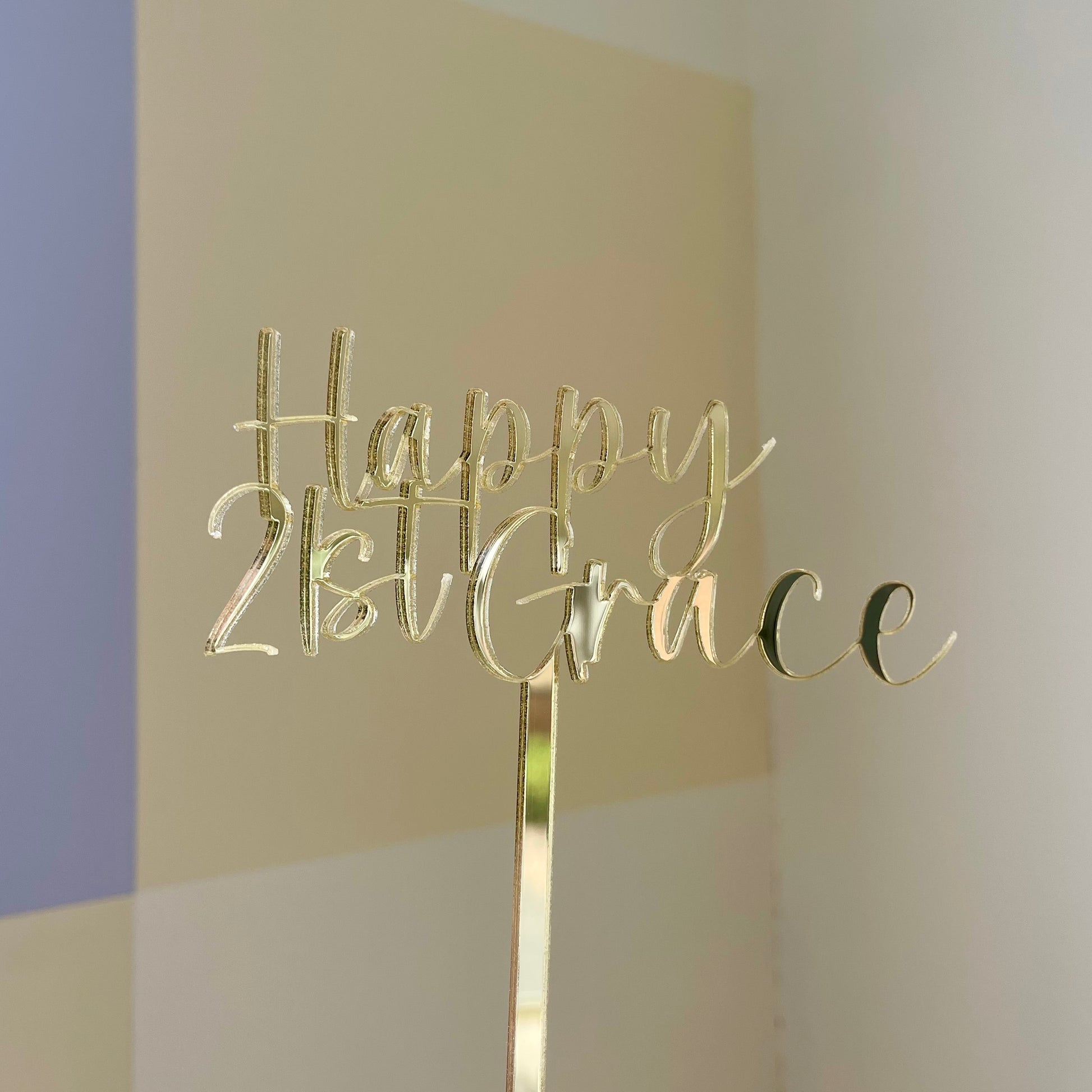 Happy 21st Cake Topper | Mirrored Acrylic | Single Layer