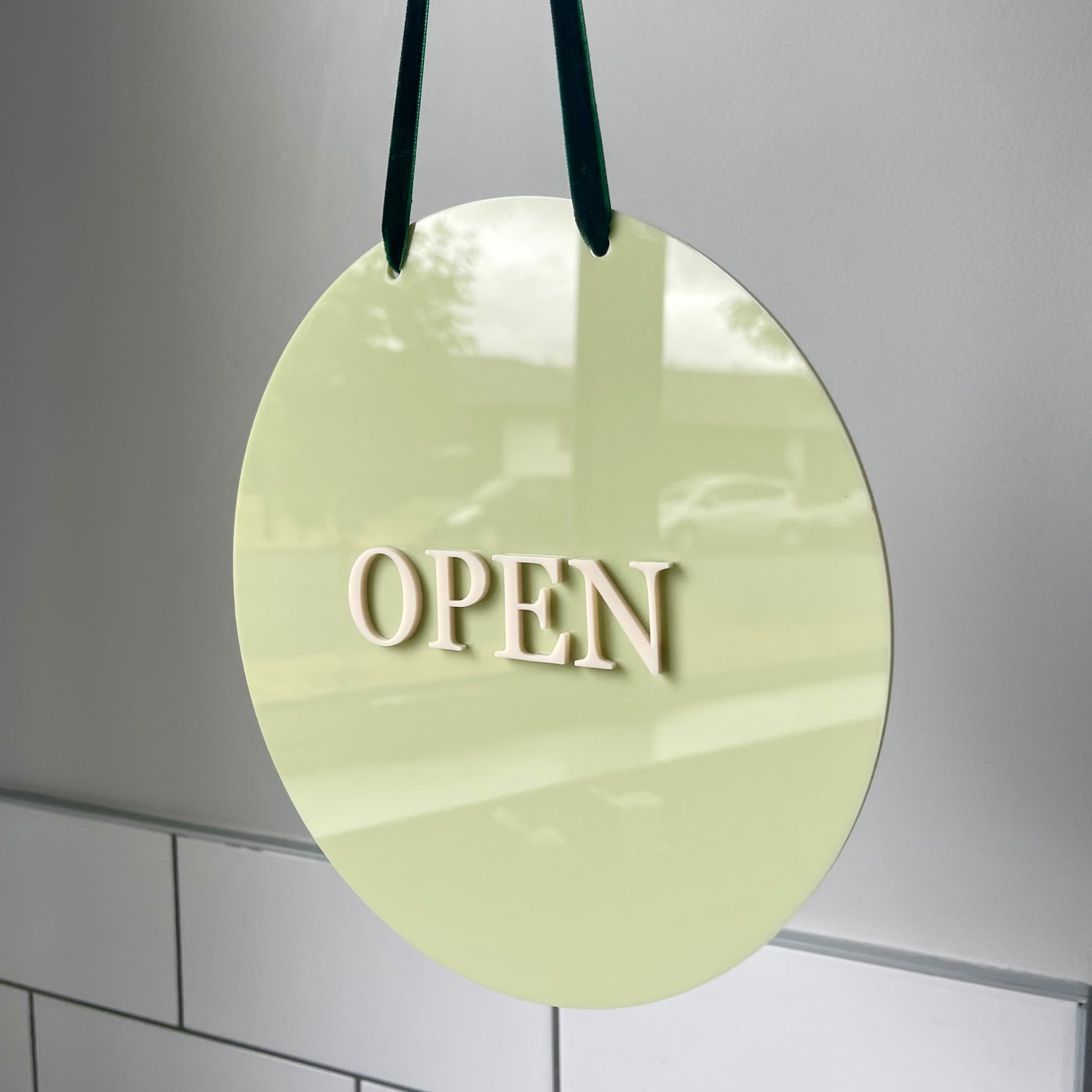 Make a bold statement with our Open/Close Sign! This reversible acrylic sign allows you to easily switch between open and closed, while customizing fonts and colors to match your brand. Save time and attract customers with our eye-catching sign!
